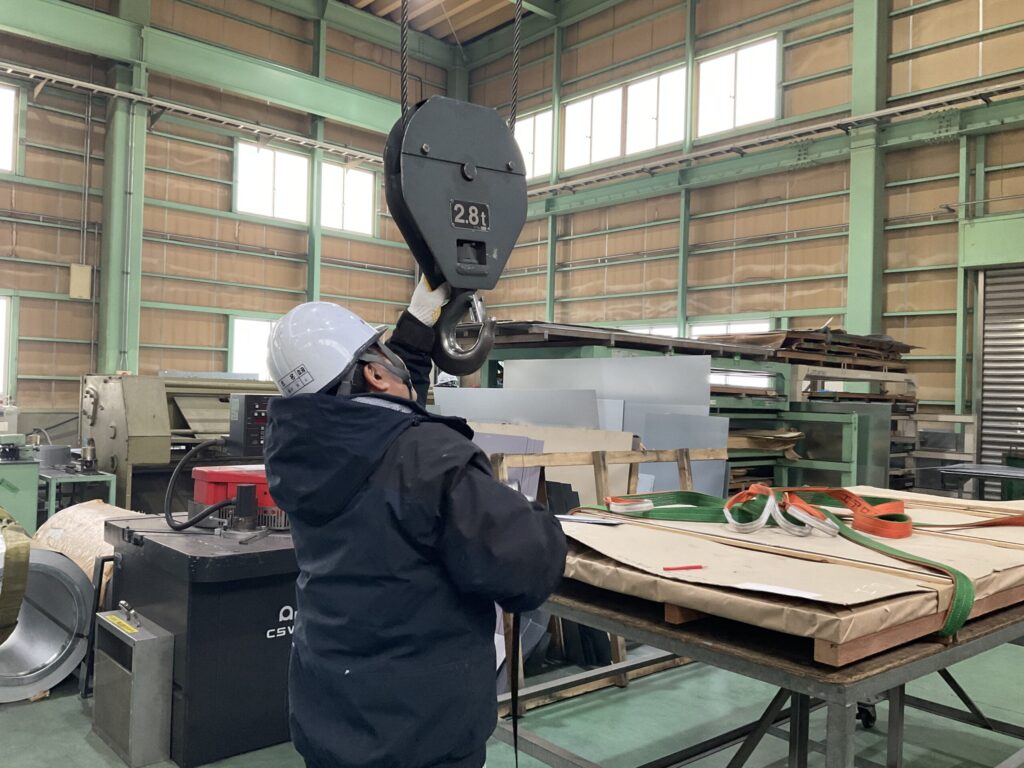 工場内で使っているクレーンの自主検査の日でした